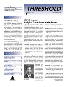 News and views for members of the ESD Association THRESHOLD TM News bits Symposium insights ..................... 1 Symposium program ................... 3 NARTE certification. ..................... 4 Symposium registration and fees 5 Exhibits. ........................................ 6 New program manager certification. .............................. 7 S20.20 seminar. ............................ 8 Symposium promotion opportunities ............................ 8 Calendar of events ....................... 8 Standards license ......................... 9 New standards documents .......... 9 Letters to the editor. .................. 10 Institutional listings .............. 11-12 In this issue ANSI/ESD S541 on Web site Packaging standard ANSI/ESD S541- 2003: Packaging Materials for ESD Sen- sitive Items is now available from the ESD Association. The new standard can be downloaded at no charge from the ESDA Web site, www.esda.org , or it may be purchased by contacting Association headquarters. The document defines the packaging properties needed to protect electrostatic discharge susceptible (ESDS) electronic items, discusses application requirements, and references the test- ing methods for evaluating packaging and packaging materials. Exhibit at the EOS/ESD Symposium Over 50 exhibitors have already com- mitted to the 2003 EOS/ESD Symposium. There is good space available, but it’s going fast. For information on exhibiting, contact Scien-Tech Associates, Inc., P.O. Box 2097, Banner Elk, NC 28604-2097; Tel: 828-898-6375, Fax: 828-898-6379. Volume 19, No. 4 July/August 2003 The 25 th anniversary edition of the EOS/ESD Symposium opens in Las Vegas in just a couple of months. For an “insider’s” view of what this year’s event has to offer, we talked with four of the individuals responsible for overseeing the 2003 Symposium: Joe Bernier, Inter- sil Corporation, general chair; Christian Russ, Sarnoff Corporation, technical program committee chair; Leo G. Henry, ESD/EMI/TLP Consultants, national tuto- rial chair; and Larry Ting, Texas Instru- ments, workshops chair. Here’s what they had to say. Threshold : Twenty-five years seems to be an impressive run for a technical confer- ence such as the EOS/ESD Symposium. What are some of the factors that help the Symposium continue to attract techni- cal presentations as well as attendees year after year? Bernier: The Symposium is the best source for ESD information and solutions across the board. For 25 years we have brought together the experts in the field to share their knowledge, understand- ing, and ideas. Our university outreach helps attract leading edge papers from academia. The Symposium Pro- ceedings are refer- enced frequently and people want to contribute to this knowledge base. Attendees want to be here for the presen- tations by the leading authors in the field, and they want to talk to and work with our vendor community at the exhibits. Threshold: What are some of the highlights this year that follow the Symposium’s past traditions or that attendees might find are totally new? Bernier: As in past years, we have a full slate of tutorials on Sunday, Monday, and Thursday. This year, many of them earn credit towards the new Program Manager certification that the ESDA has announced. ( Editor’s note: see story on page 7) The tutorials are always very popular, so be sure to register early to reserve a space. We have a welcome reception in the exhibits area on Monday evening where you can get a head start at checking out the exhibits in a relaxed atmosphere. The awards breakfast on Tuesday morning is always a good kick-off to the technical sessions. We have parallel technical ses- sions plus a new plenary session that fea- tures a talk on electronic packaging and ESD. This session should be of interest to people in all of our traditional “tracks”. We also have some newworkshops as well as some returning favorites. Threshold: The technical papers are a primary focus of the Symposium. What general topic areas are covered in the tech- nical sessions this year? Which areas are new or expanded this year? Russ: We have received and selected papers from literally every area with an ESD concern. The range of topics starts with electrostatic control and preven- EOS/ESD Symposium Insights from those in the know Joe Bernier continued on page 2
