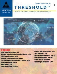 EOS/ESD ASSOCIATION, INC. NOV/DEC 2025 VOLUME 42, NO 6 THRESHOLD™ SETTING THE GLOBAL STANDARDS FOR STATIC CONTROL! 1 IN THIS ISSUE: Letter From The President - #2 Message From Our Senior Executive Director - #3-4 ESDA Events Schedule - #5-6 Emerging Professionals Tech Talk #7 47th Annual EOS/ESD Symposium & Exhibits #8-17 Academia Spotlight #18-20 Press Release #21 ESD External Article - #22-36 Connect With Us On LinkedIn - #37 Tech Questions - #38 Services/Advertisements - #39-43 Entertainment Center - #44-46 Would You Like To Publish Something in Threshold? - #47