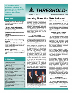 Stay updated on useful news, progress, and opportunities locally and across the world on advancing the theory and practice of electrostatic discharge avoidance. Also take advantage of our extensive library of previously published Threshold newsletters!